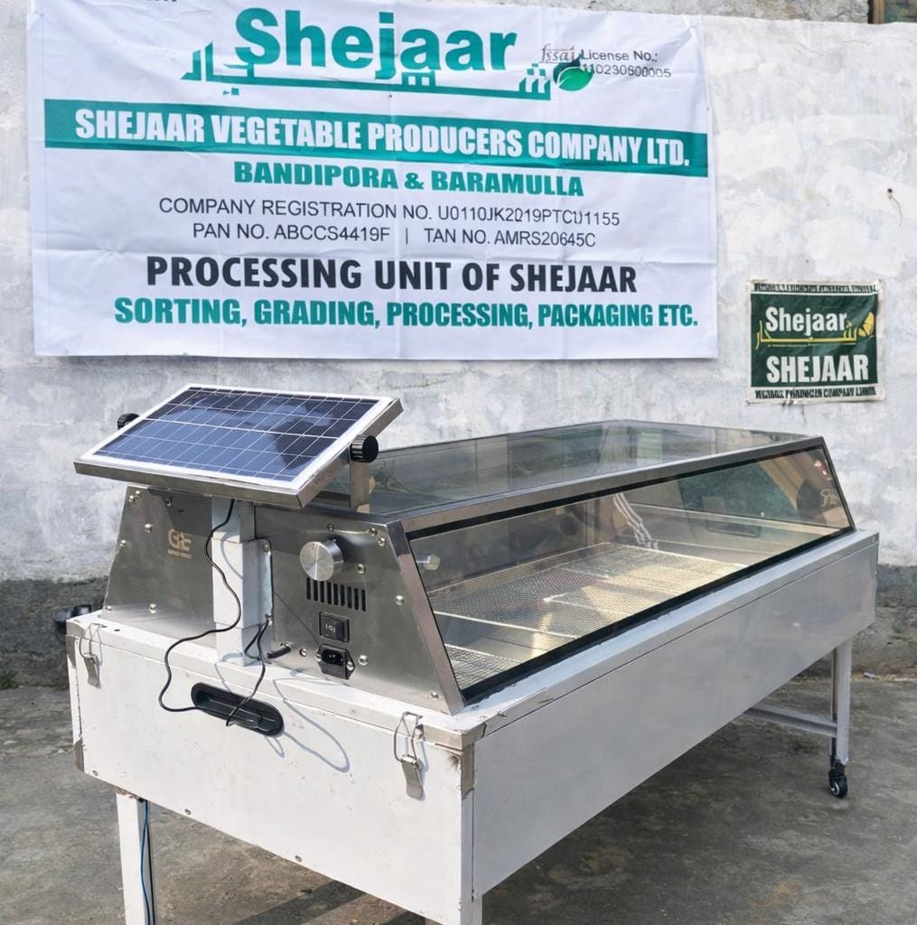 Our project has successfully installed a high-performance food dehydration unit in Sumbul J&K, which boasts a capacity of 100 kg per day, processing fresh vegetables and fruits into high-quality dehydrated products.